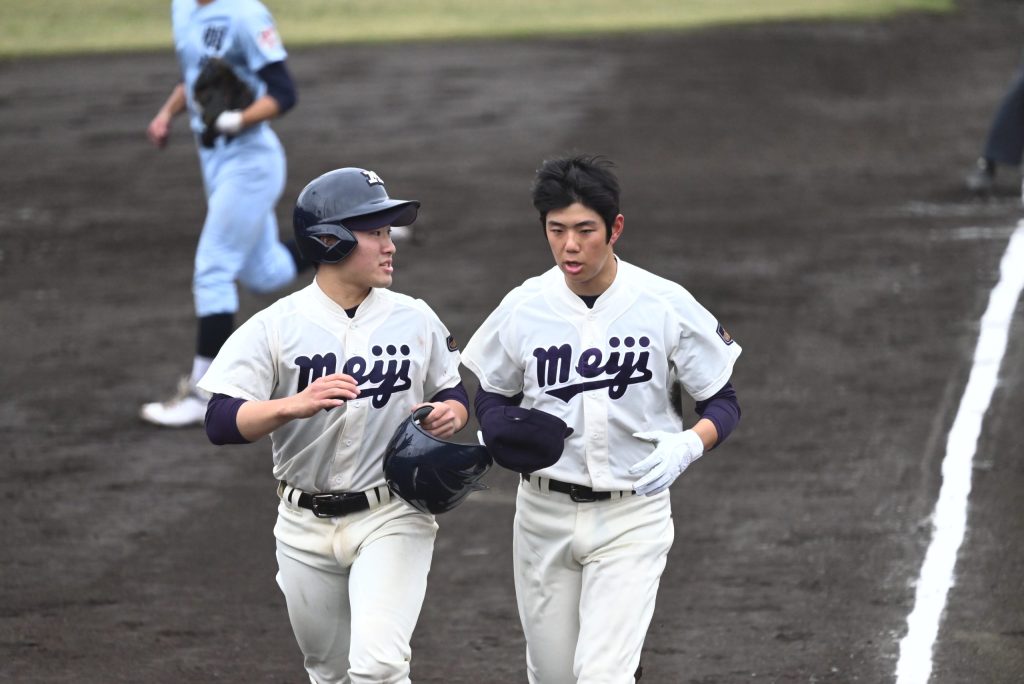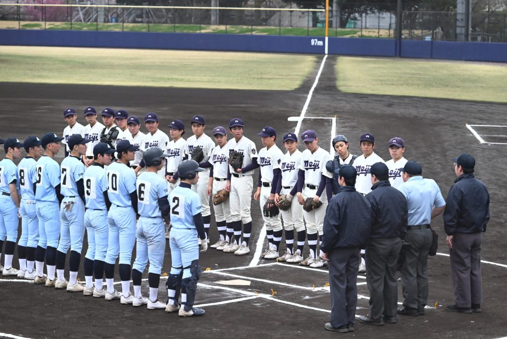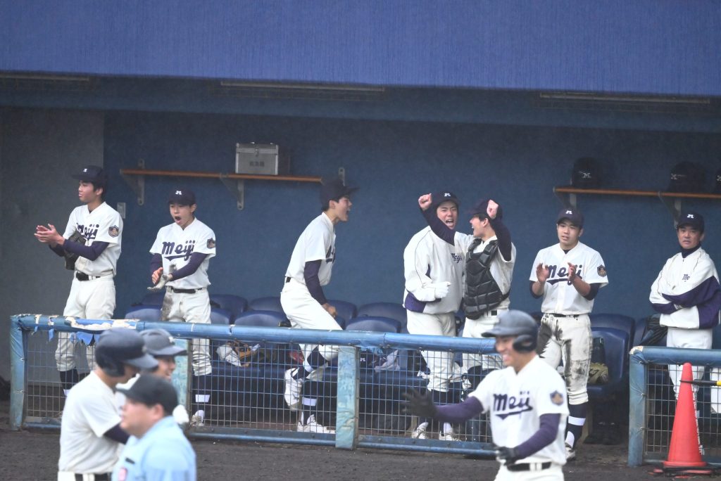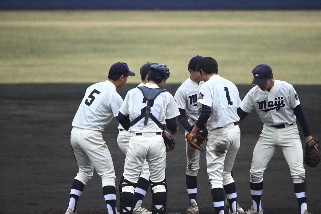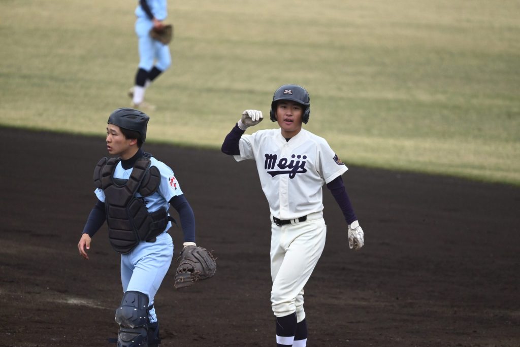 3月20日の予選2回戦では、4番原島の満塁サヨナラホームランで1-12コールド勝ち、勢いに乗る明治。