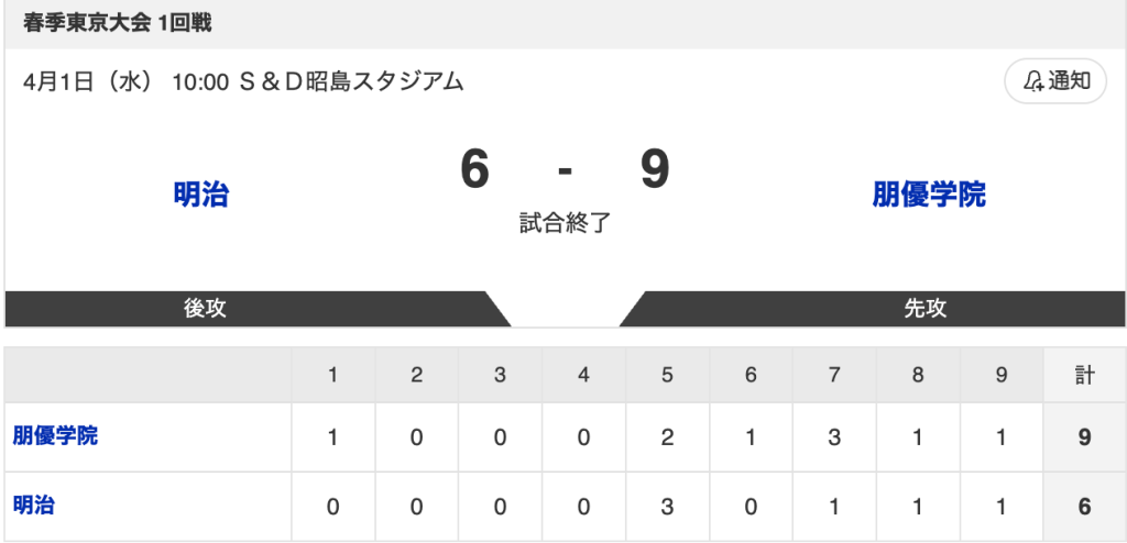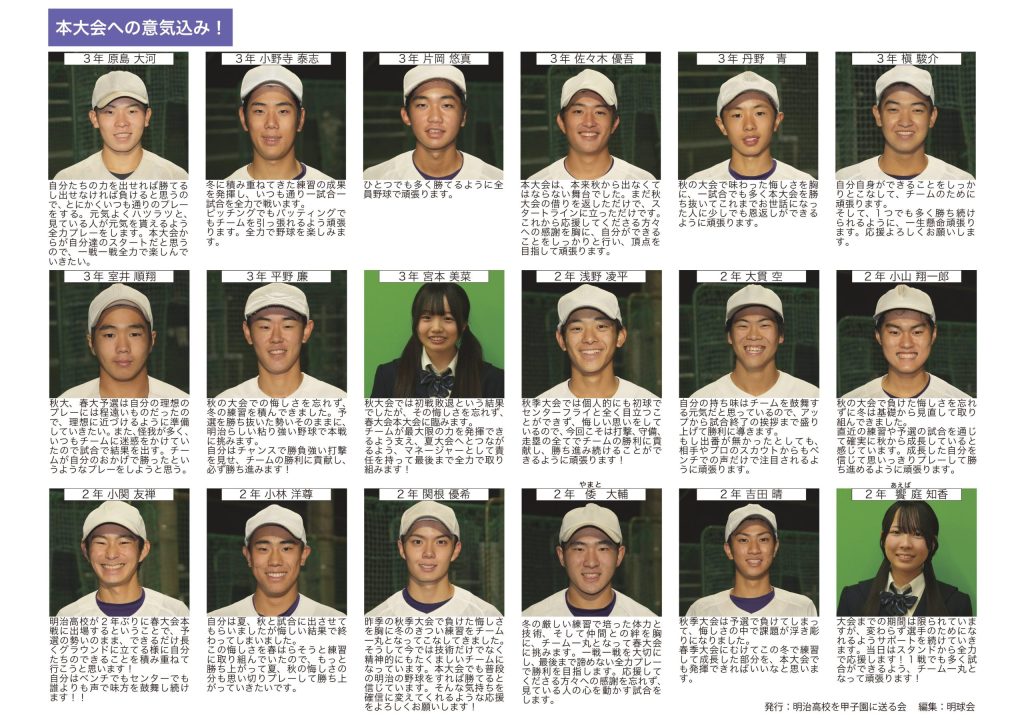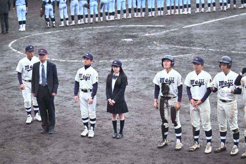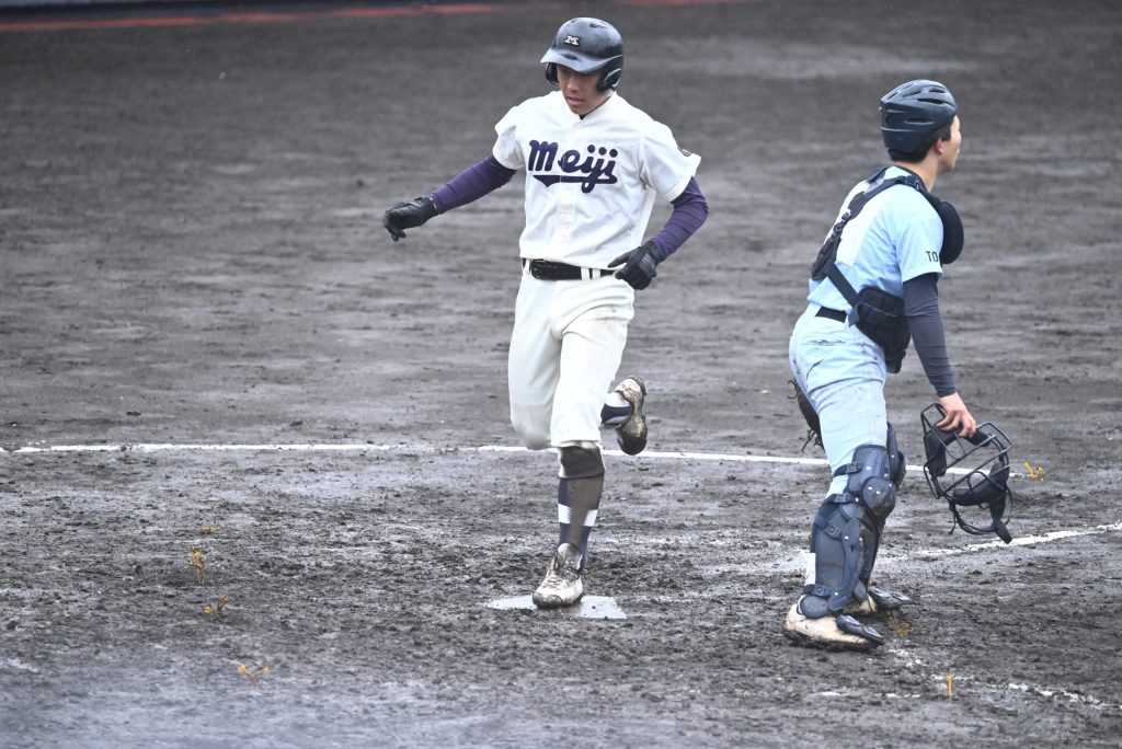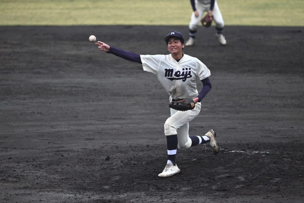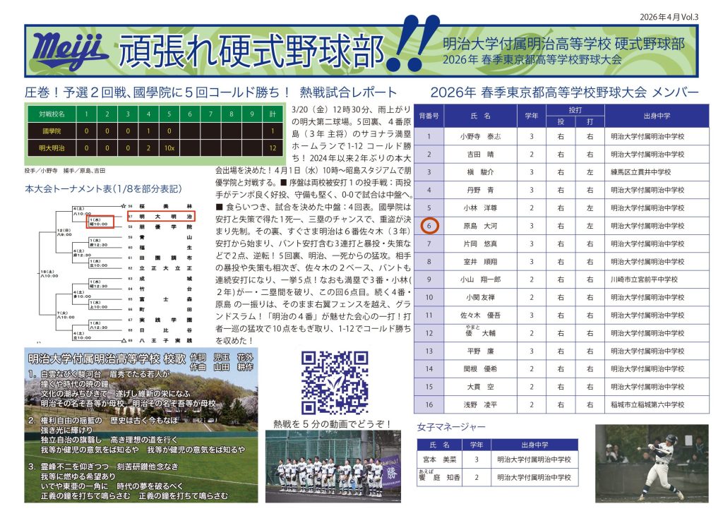 3月20日の予選2回戦では、4番原島の満塁サヨナラホームランで1-12コールド勝ち、勢いに乗る明治。