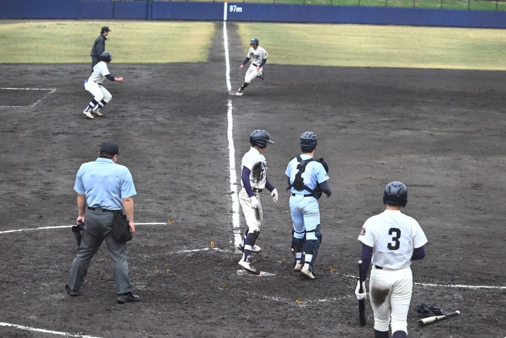 先頭の9番丹野がレフト前ヒットで出塁し、続く1番室井が三振に倒れたものの、2番吉田のヒット、3番小林の四球と一死満塁のチャンスで4番主将の原島を打席に迎える。